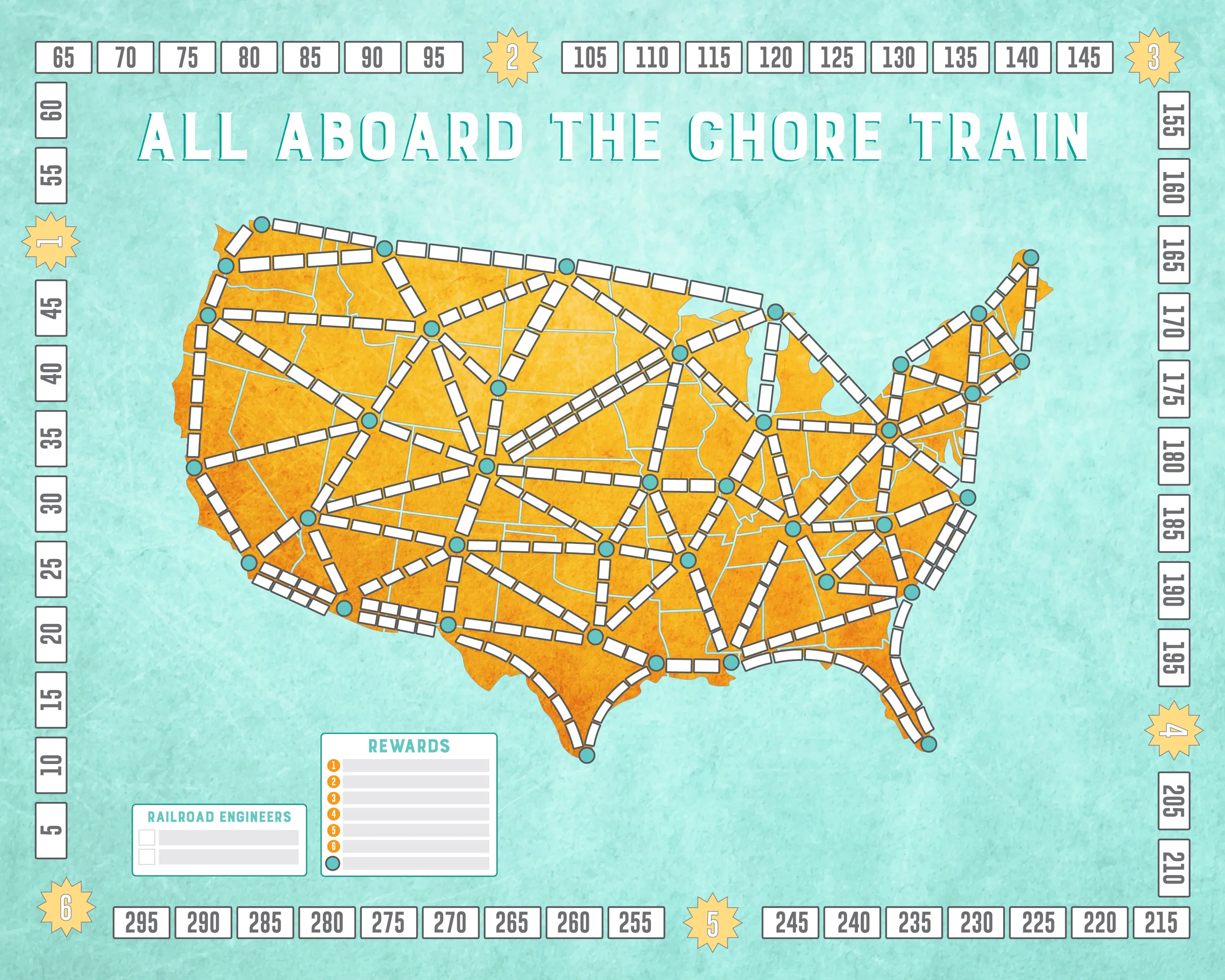 -Keep track of the total number of trains for all your kids combined around the edge so they can earn family rewards