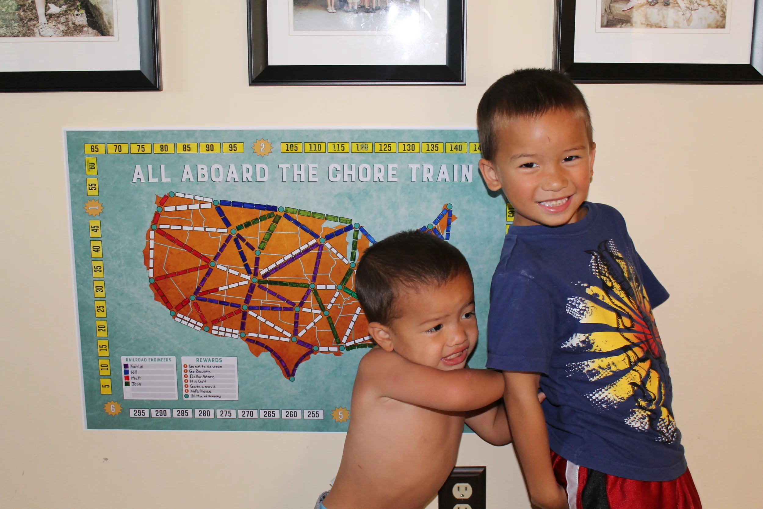 I wanted to take a picture to show my chore chart in use in real life. Well, here it is people. My 2.5 yr old does not do chores yet, but he insisted on being in the picture. He also wanted to be the only person in the picture. He also refused to put on a shirt. That pretty much sums up my life.